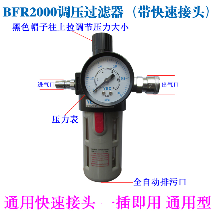 BFR2000 pressure regulating filter without connector BFR2000 pressure regulating filter insert 4mm tube BFR2000 pressure regulating filter insert 6mm tube BFR2000 pressure regulating