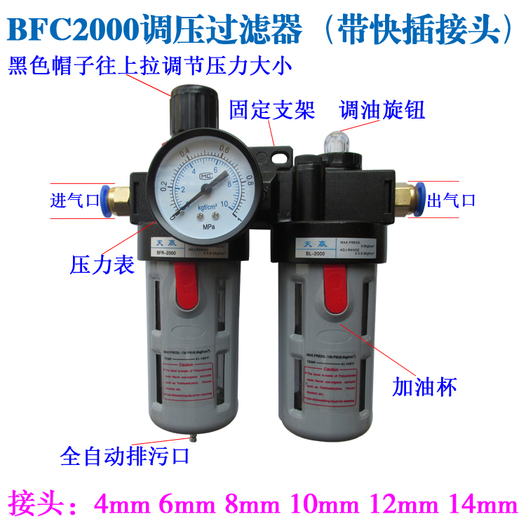 Air source processing two-piece BFC-2000 3000 4000 filter BFR BL pressure regulating oil-water separation two-piece