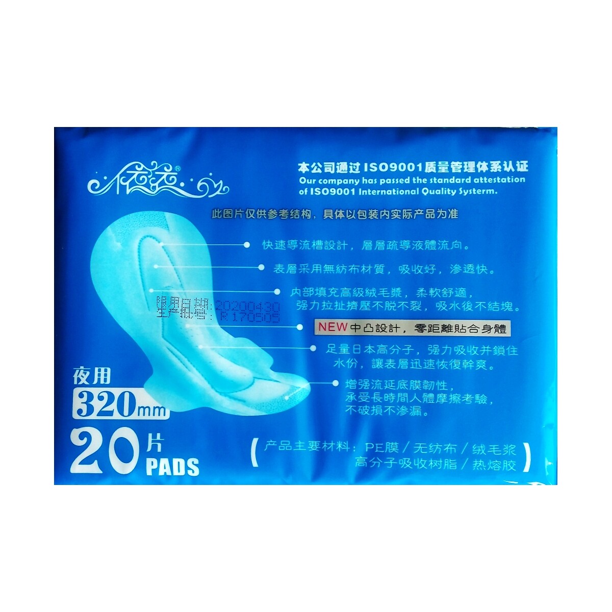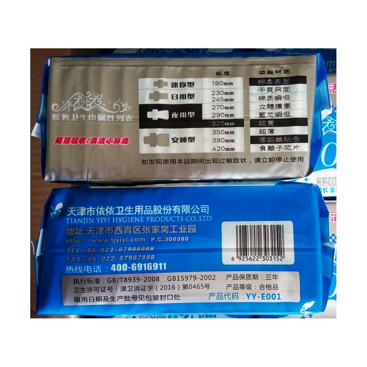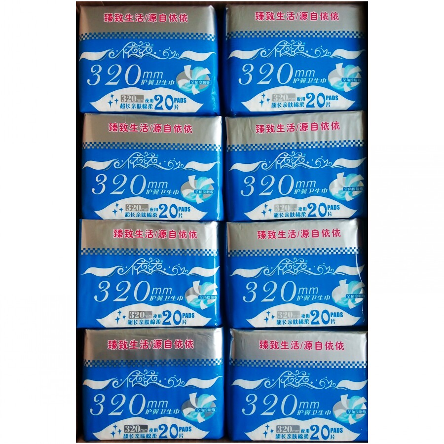 Yiyi 320mm sanitary cotton whole box promotion extra-long middle aged night with pro-skin cotton flexo 20 pieces 24 packets of 480 pieces