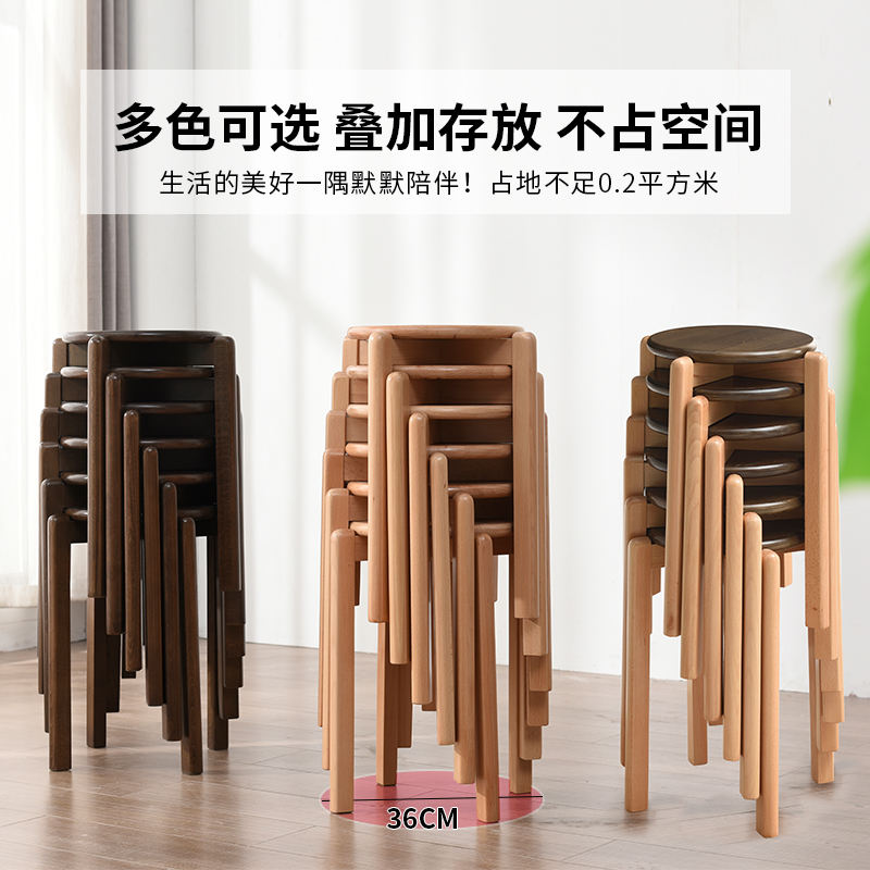 Home Comfort Full Wood Round Stool Home High Bench Dining Stool Modern Minimalist Bench Fashion Creative Wood Stools