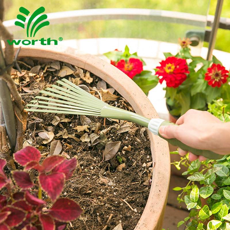 Woschworth gardening nine-tooth rake home garden fine-tooth small grass rake hug leaves debris cleaning hand tool
