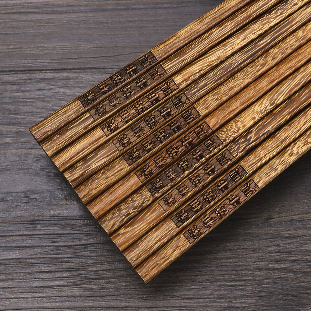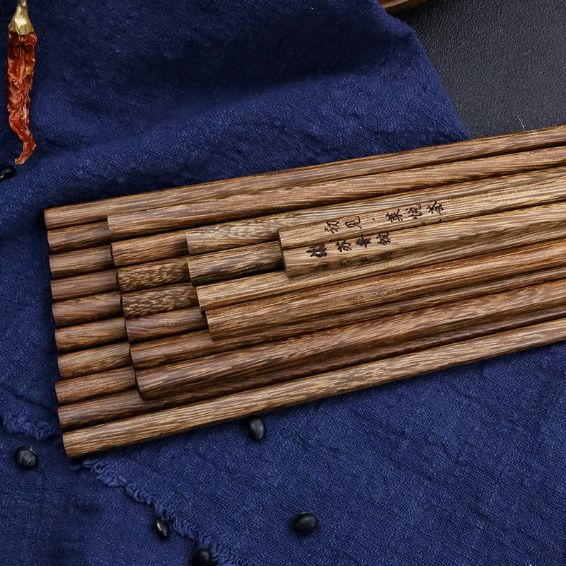 Natural chicken fin wood high - grade wood household chopsticks without paint - free wax 10 pairs of family suits are anti - slippery