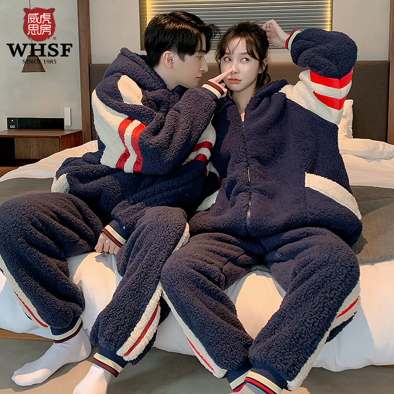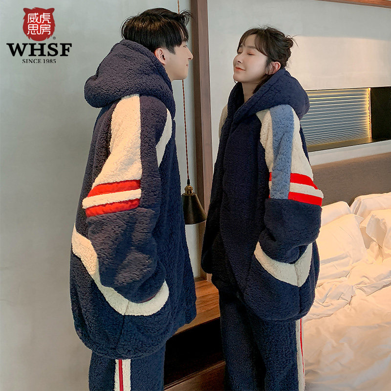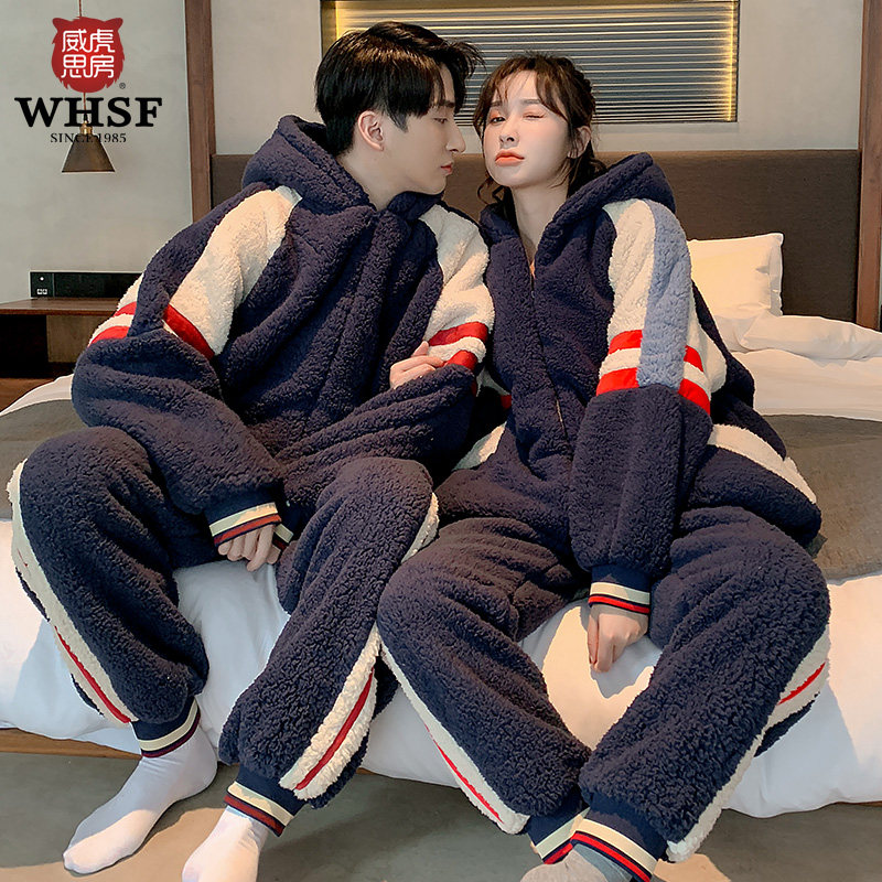 Couple pajamas autumn and winter coral fleece men and women padded warm winter flannel can be worn outside home suit