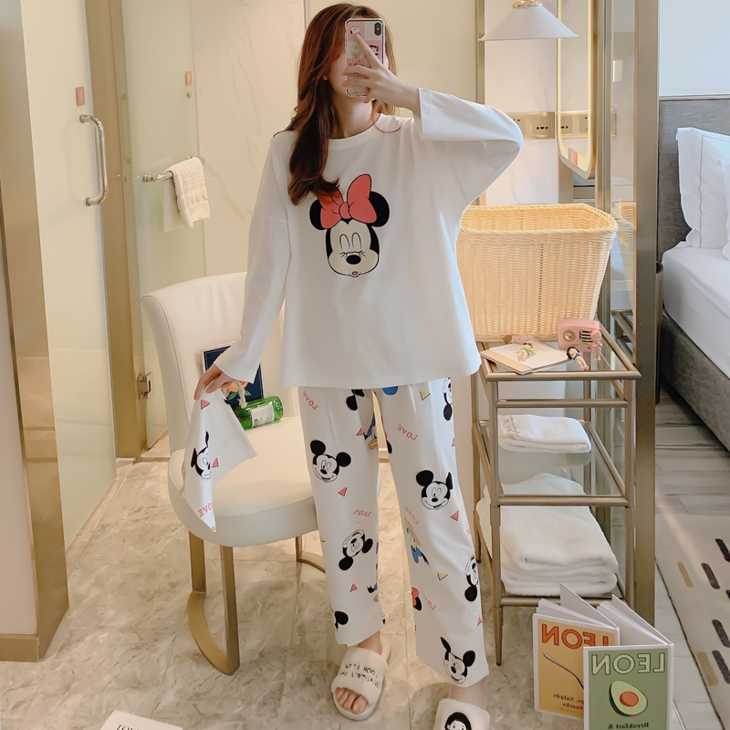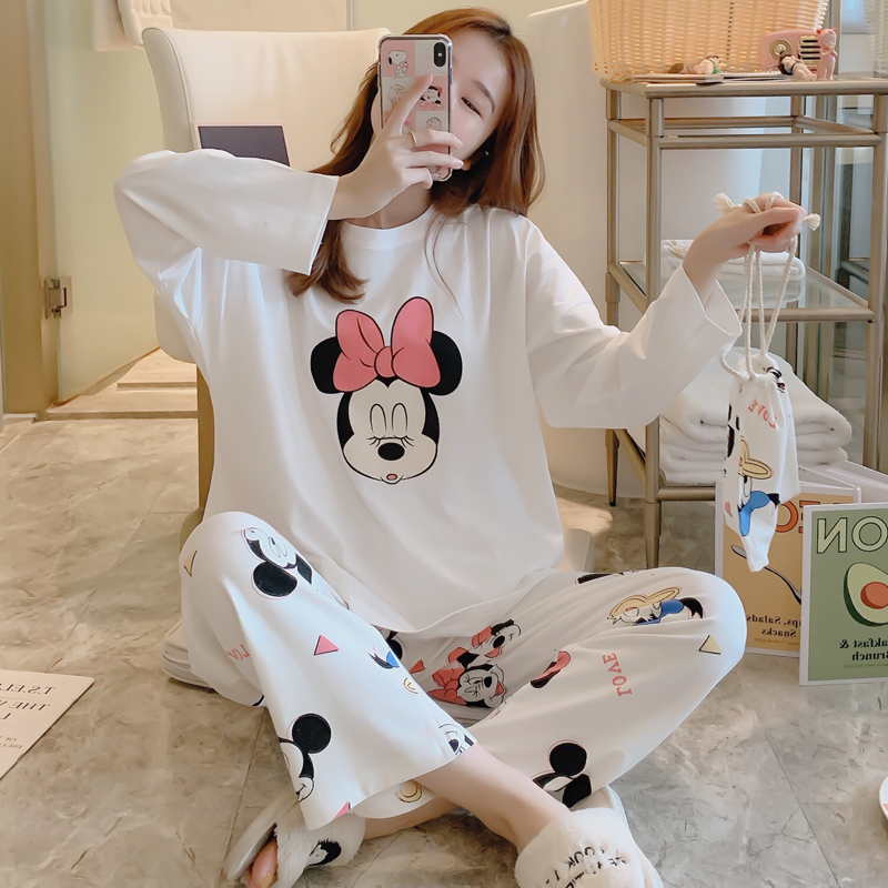 Cloth bag pajamas women spring and autumn and winter cotton long-sleeved casual cute homewear women thin spring cotton suit