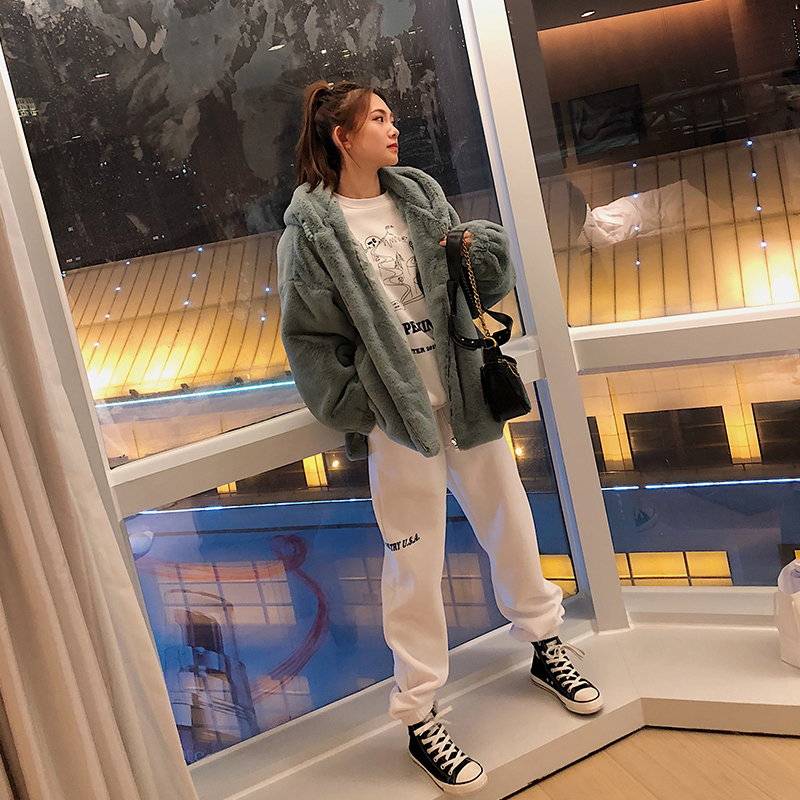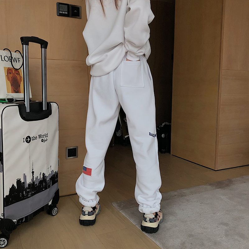 Song Zhengen Sportpants Woman Spring Autumn 2021 New Korean Version Loose Bunches Kharen Pants High Waist Casual Thick Cotton Pants Long Pants