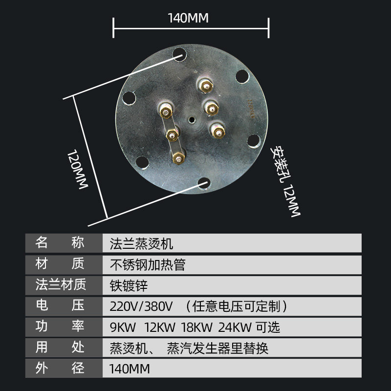 Steam-heating machine heating pipe 140 flange boiler electric heating tube industrial steam generator 380V12KW18KW24KW