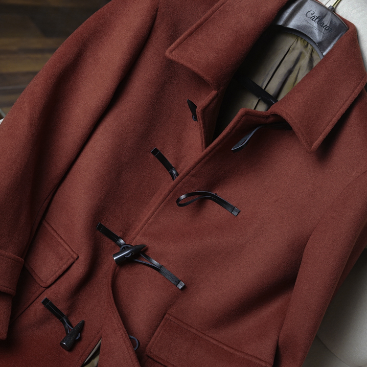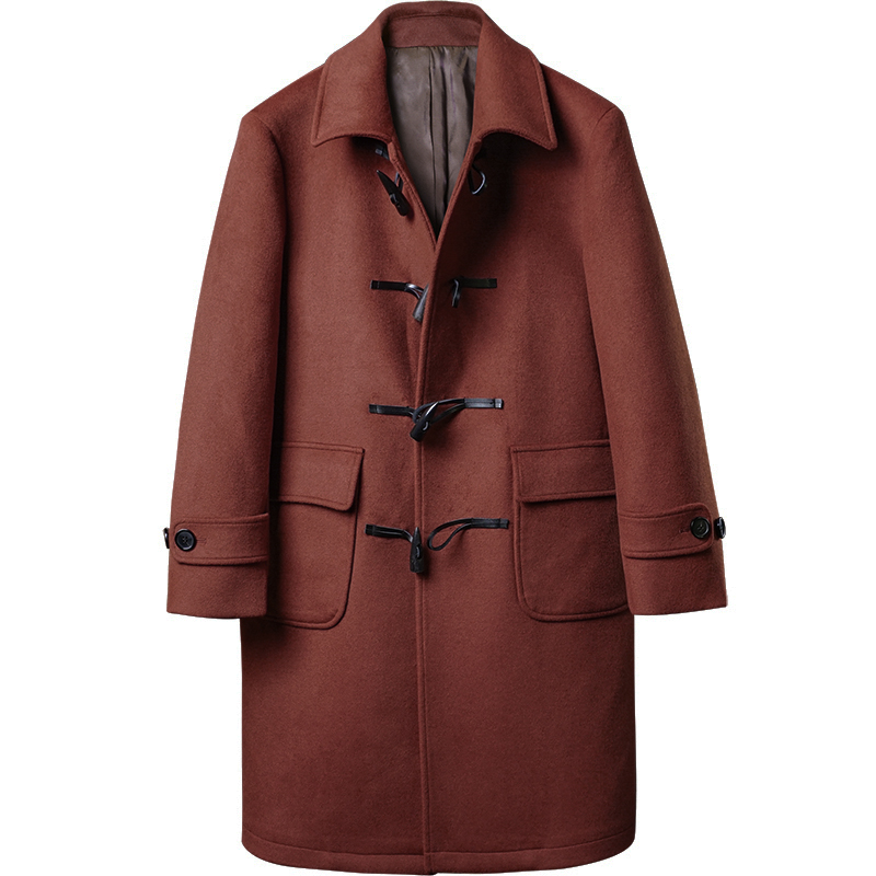 Retro preppy wind horn button coat autumn and winter thickened woolen coat mid-length woolen coat for men