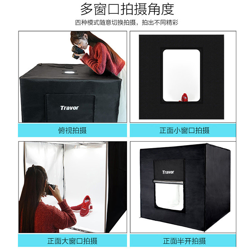 Traveler LED small studio 80cm photo props Soft light box set Cloth-free adjustable light studio Taobao shooting still life shooting equipment Photography light set
