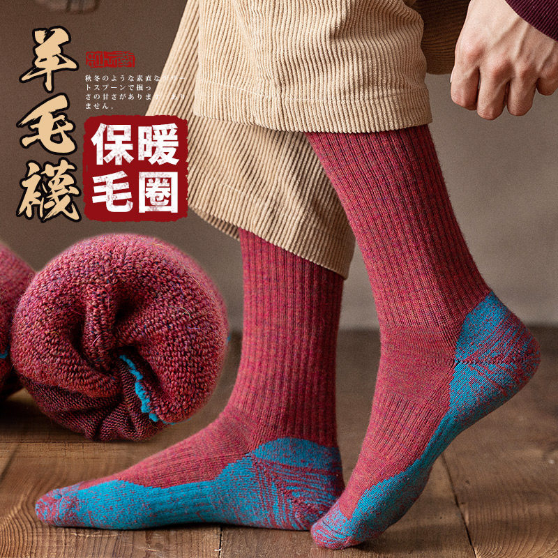 Wool Socks Men's Midbarrel Socks Winter Thickened Wow Warm Sports Long Barrel Socks Men's Retro Plus Suede Thickened Tide
