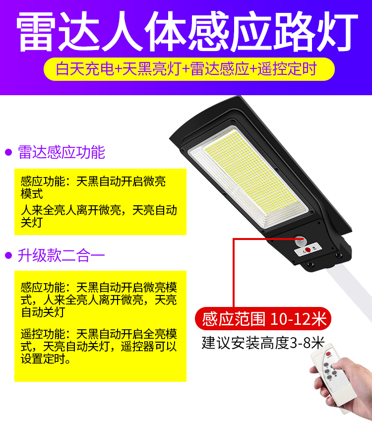 Upgraded 200W 180 LAMP (always bright light control intelligent induction) with remote control (holding rod) engineering 600W 646 lamp beads (always bright light control intelligent sensor) belt