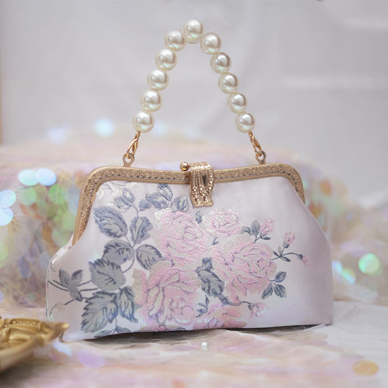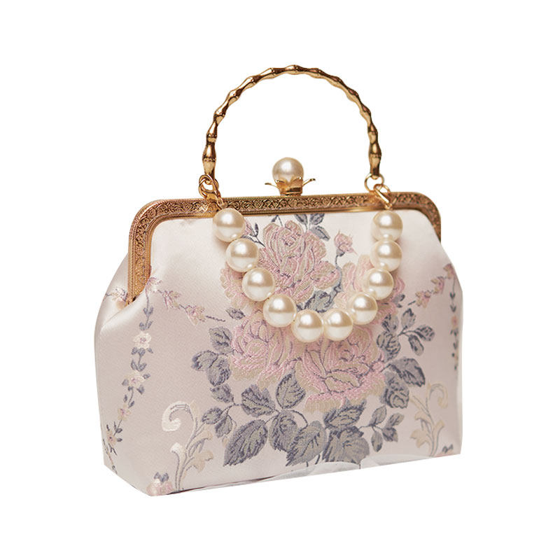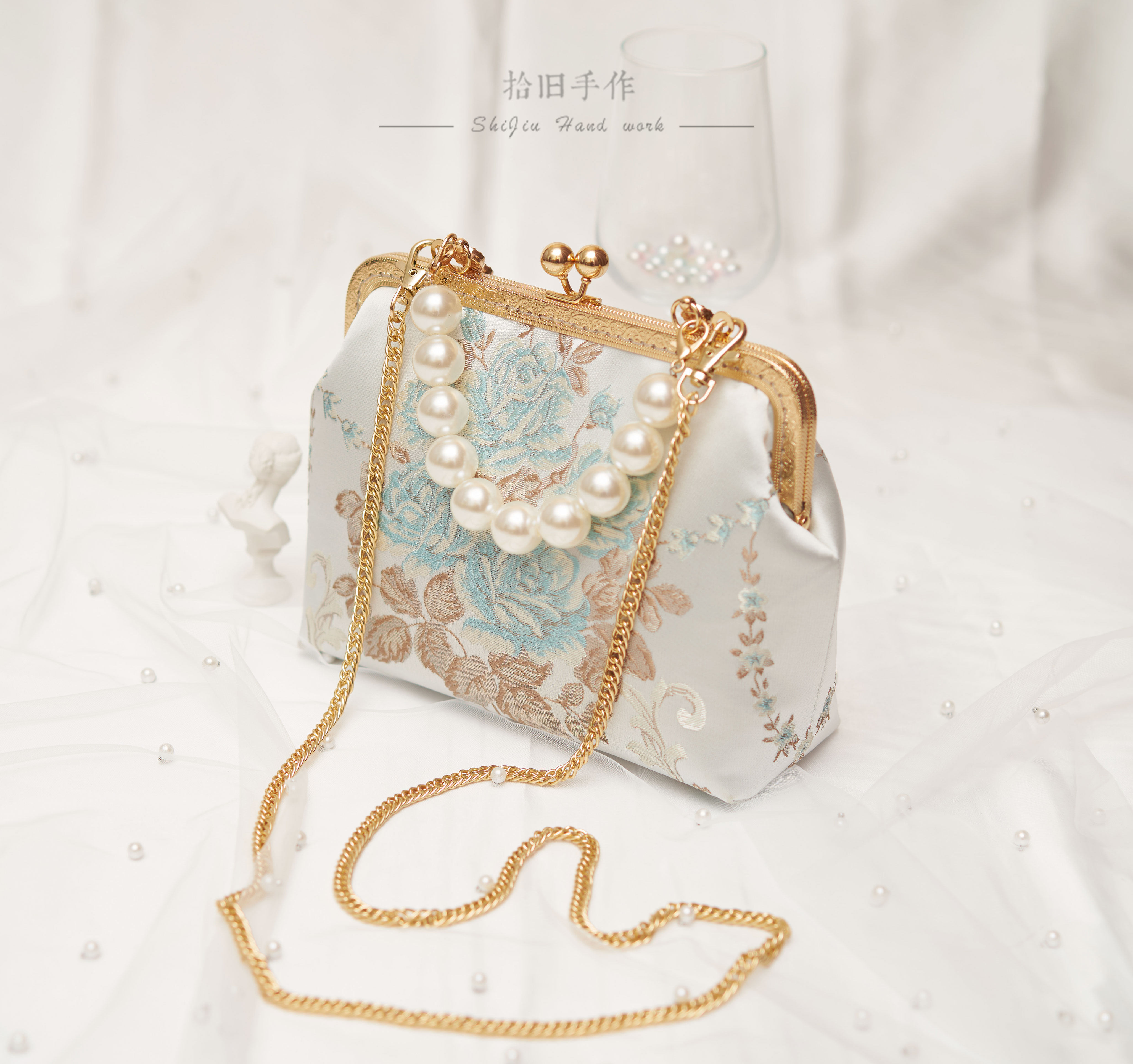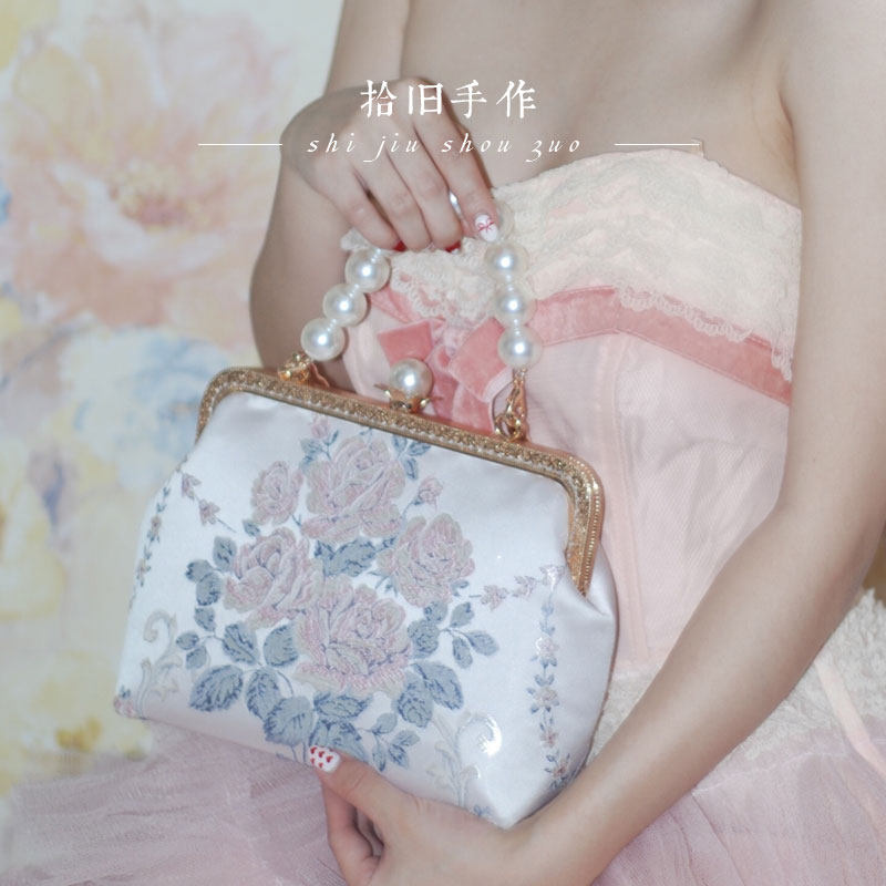 Original Handmade Beautiful Embroidery Antique Pearl Handbag Fairy Ladies Court Style Lolita Tea Party Bag