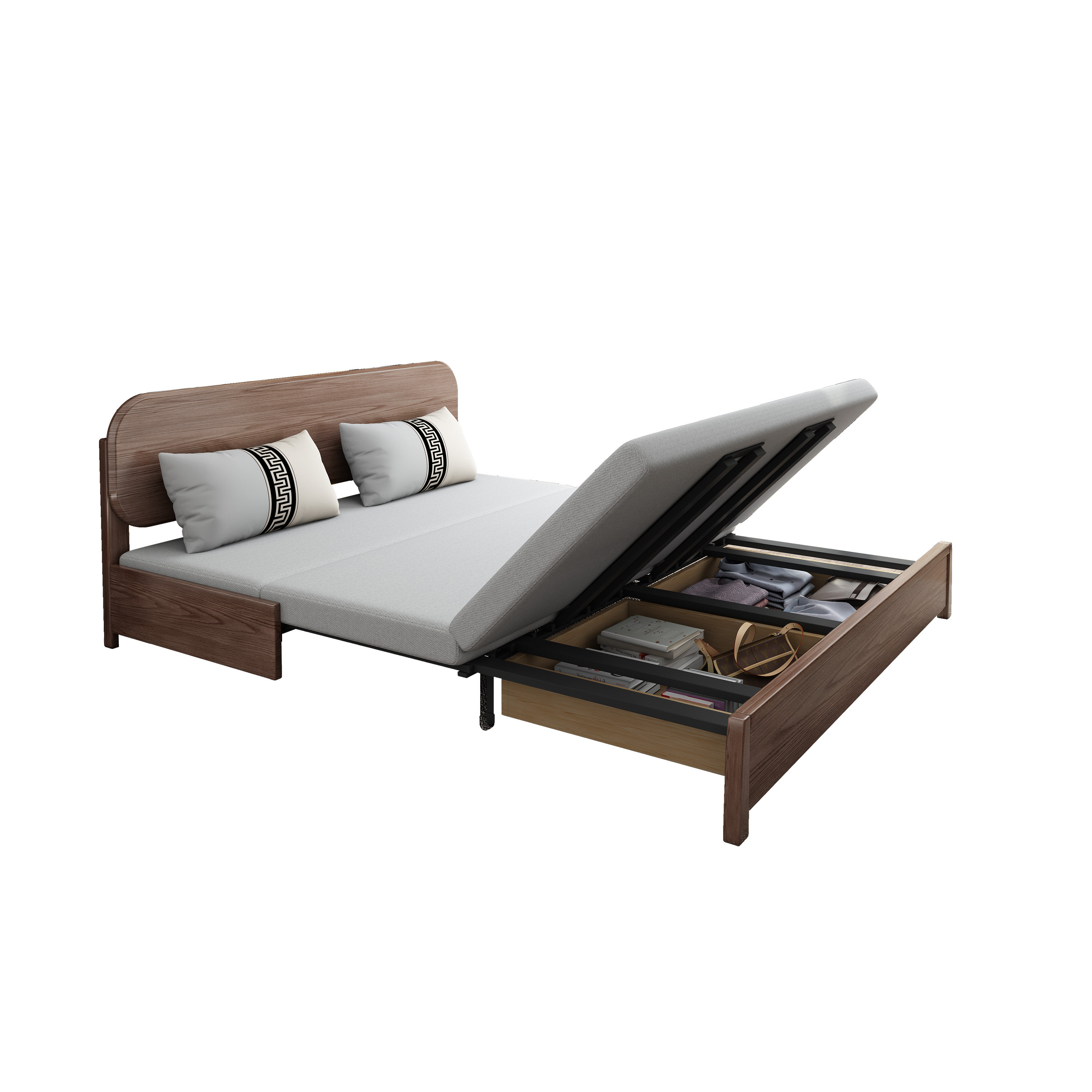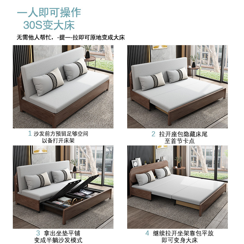 Solid wood sofa bed foldable multifunctional living room study room single double sitting and sleeping quality luxury type