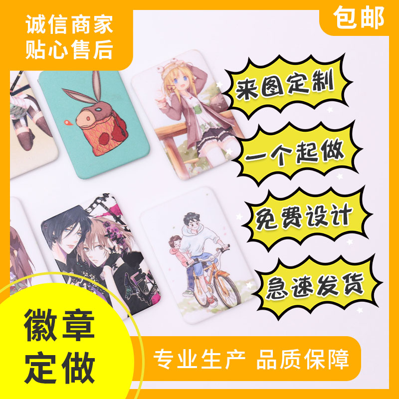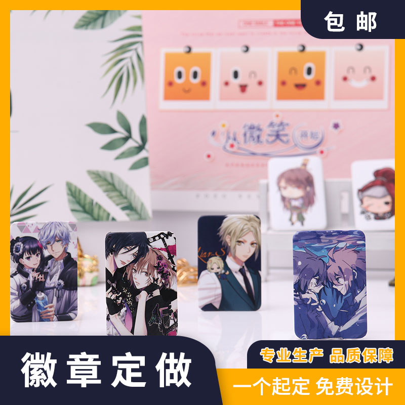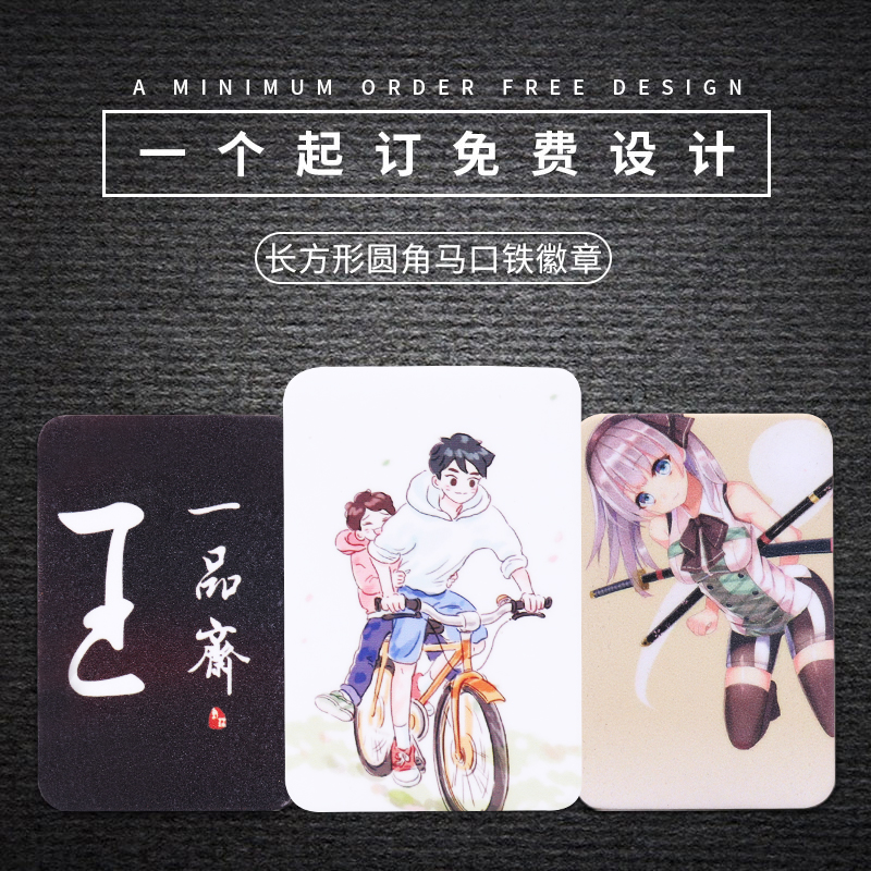 Custom shaped bar chi rectangular 40mm*60mm badge custom tinplate double flash laser film