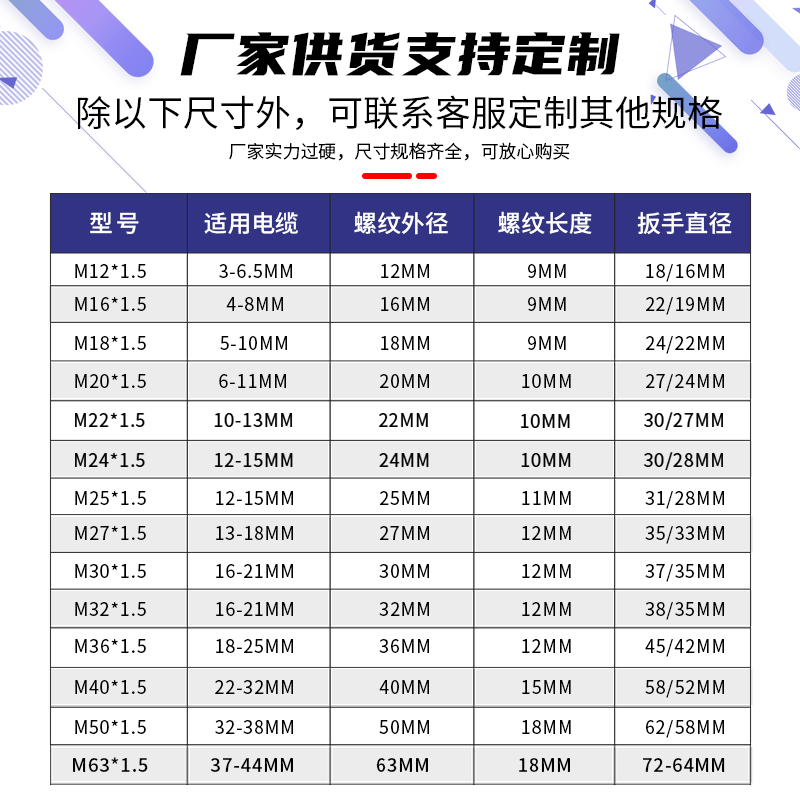 Plastic cable waterproof connector nylon fixed Glenghead M12M18M20M25M63PG7PG21