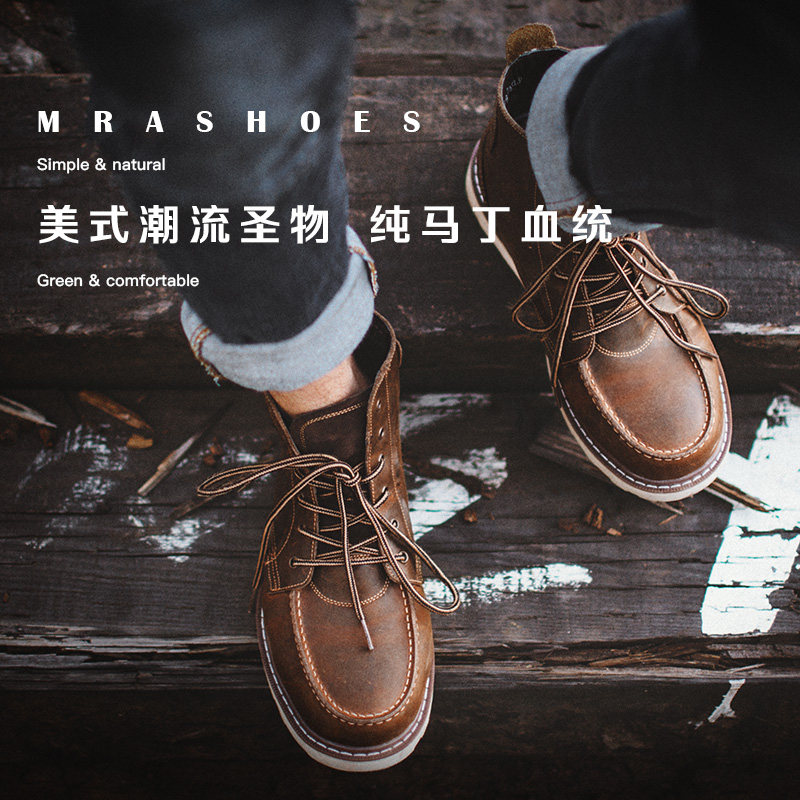 Maden Martin boots male high cylinder tooling boots Inlenty wind men's boots midbarrel men's shoes spring 100 lap boots for short boot leather boots