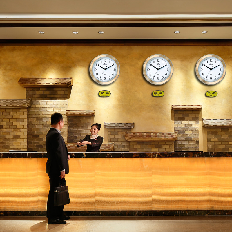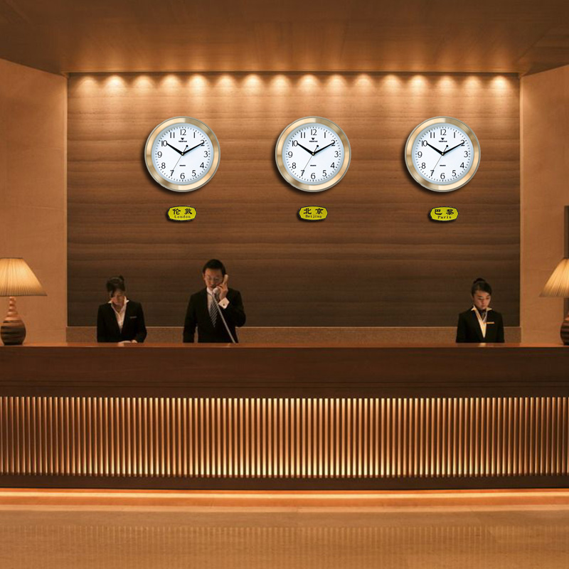 VICSTAR Hotel Guesthouse Lobby Front Clock Hung Clock World Time Brief Modern Silent Round Watch