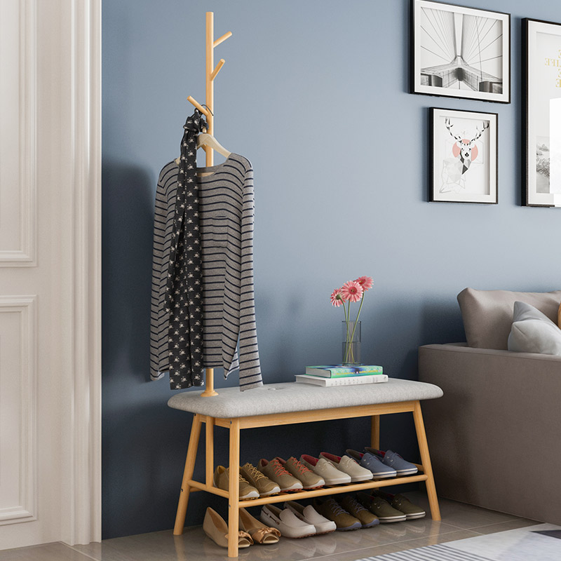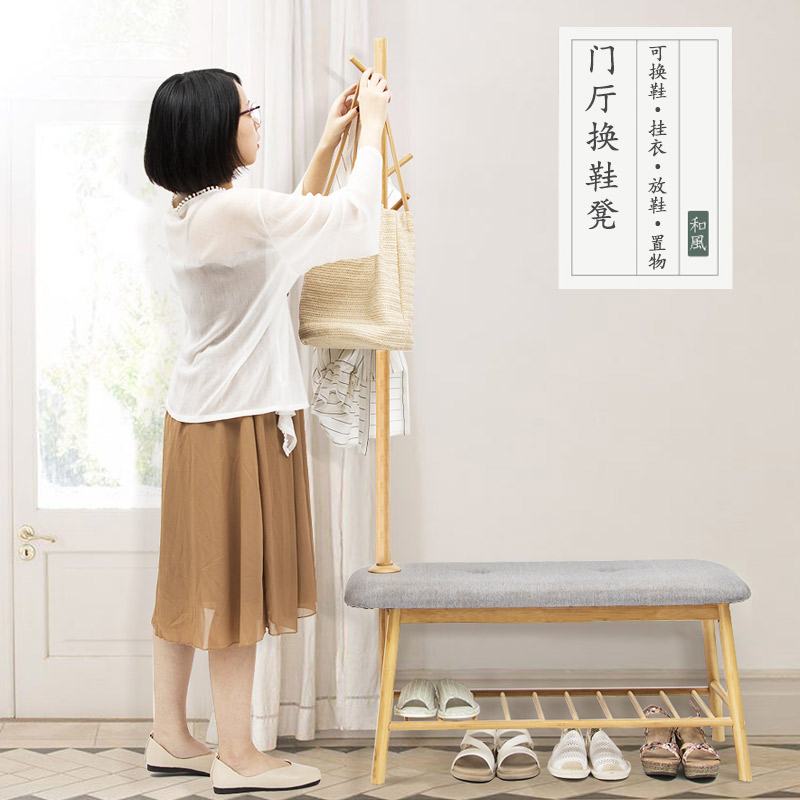 Entry coat rack with shoe stool, home door, shoe stool, shoe stool, shoe cabinet, Nordic solid wood hanger