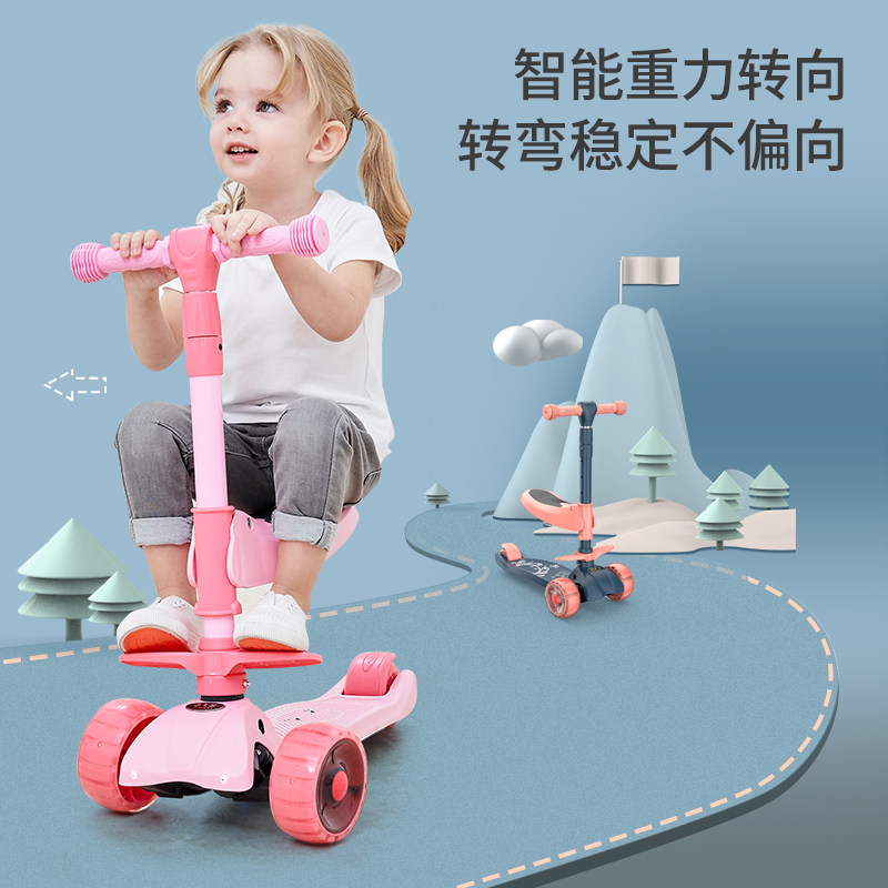Dark Night Pink Pink music light folding seat 5CM-6 light wheel Upgrade dark night powder Demolition Base Music Light 5CM Six Lights Wheel Dark Night Pink Pink Push Musical Lights