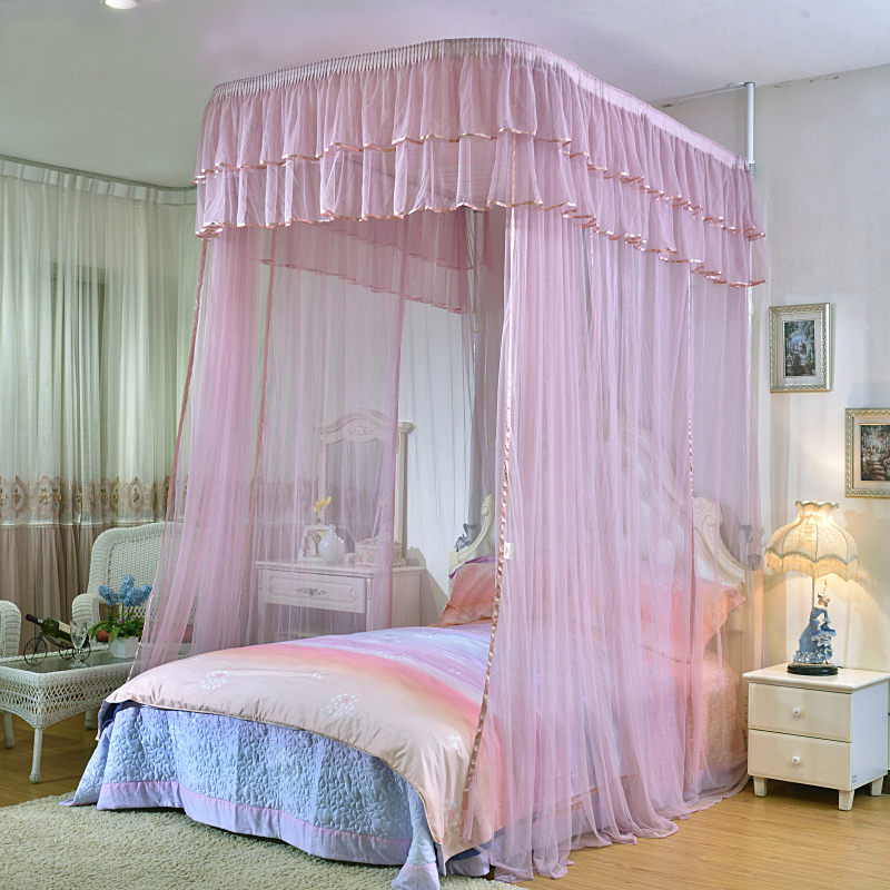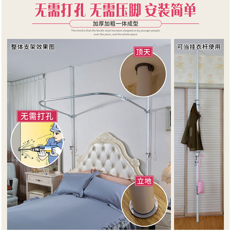 Tiandi rod lifting mosquito net household three-door U-shaped rail fishing rod telescopic 1 8m2 m 1 5 bed Tiandi column