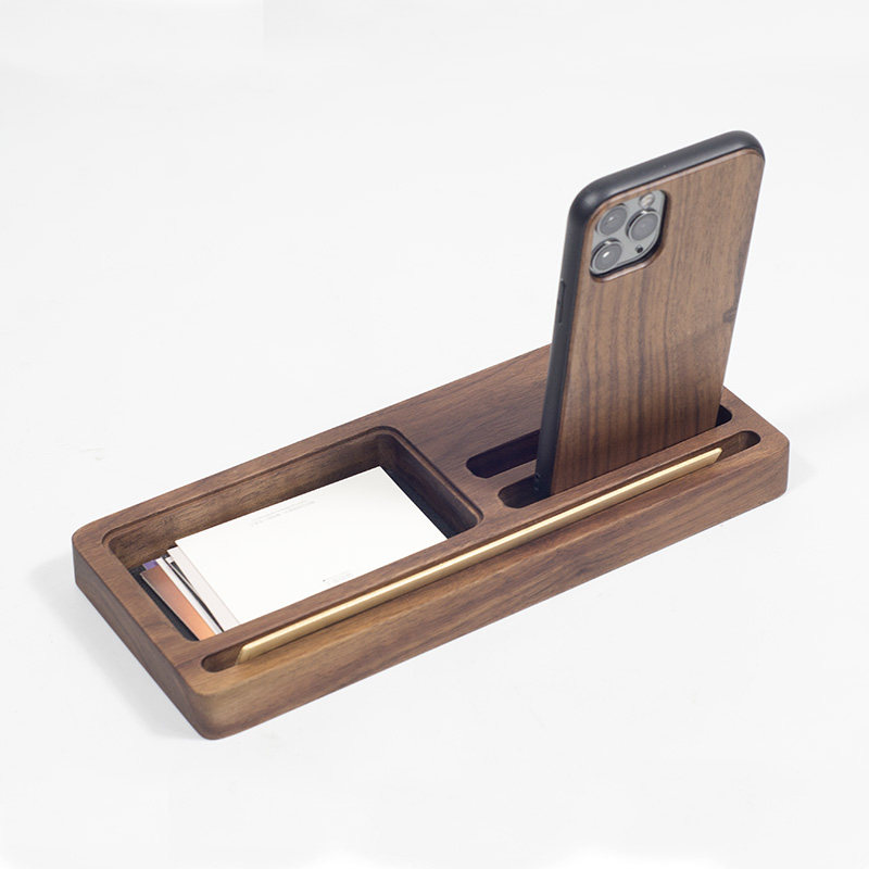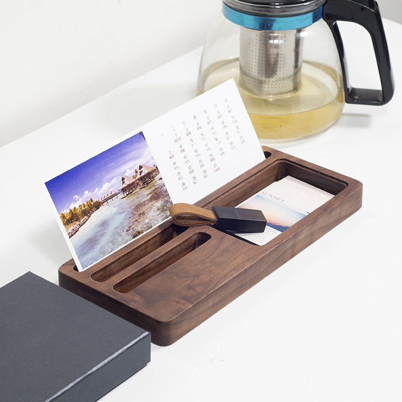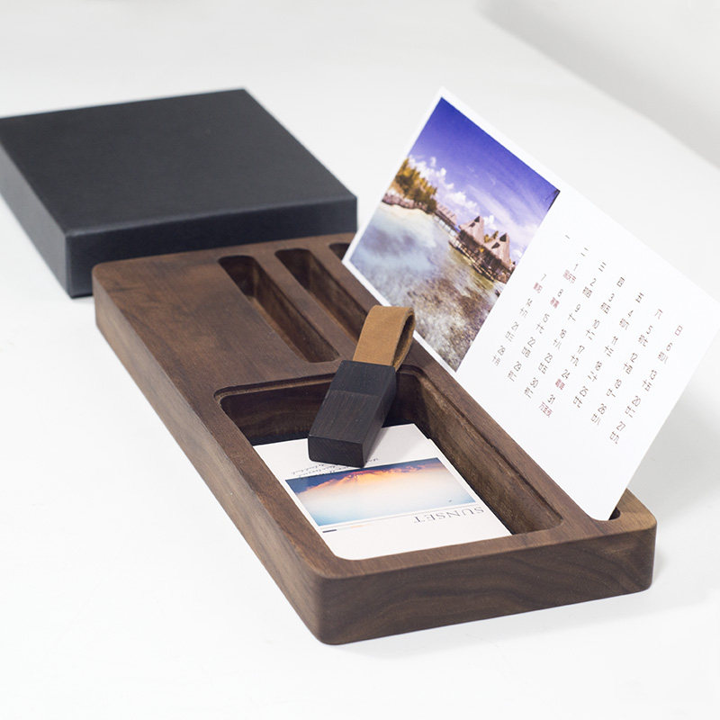 Black walnut wood calendar desk calendar office commercial gift l desktop storage box mobile phone stand logo customization