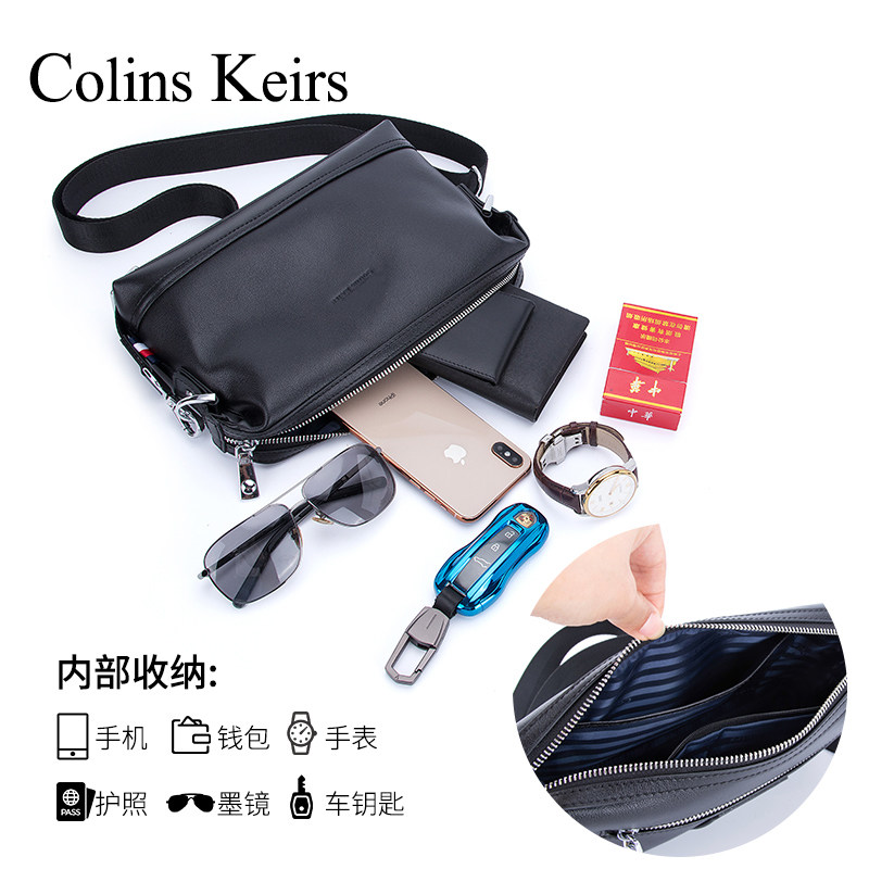 Coins Keiirs Tide Cards Men's Bag Single Shoulder Bag Genuine Leather Skew Satchel Men Business Casual Multifunction Cow Leather
