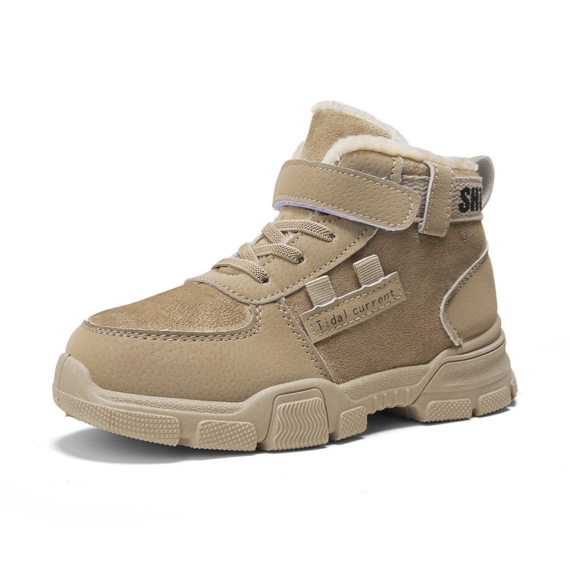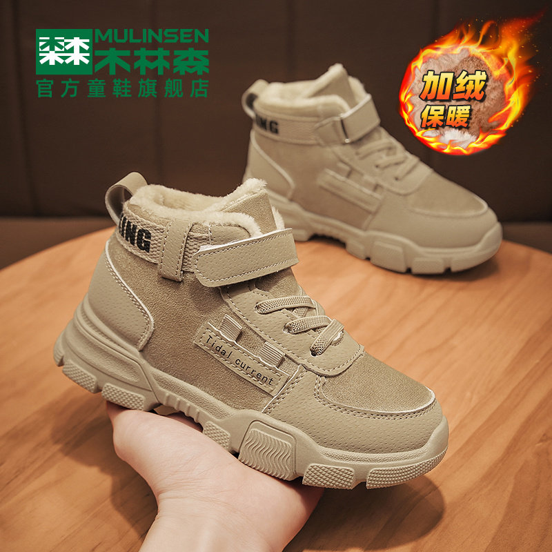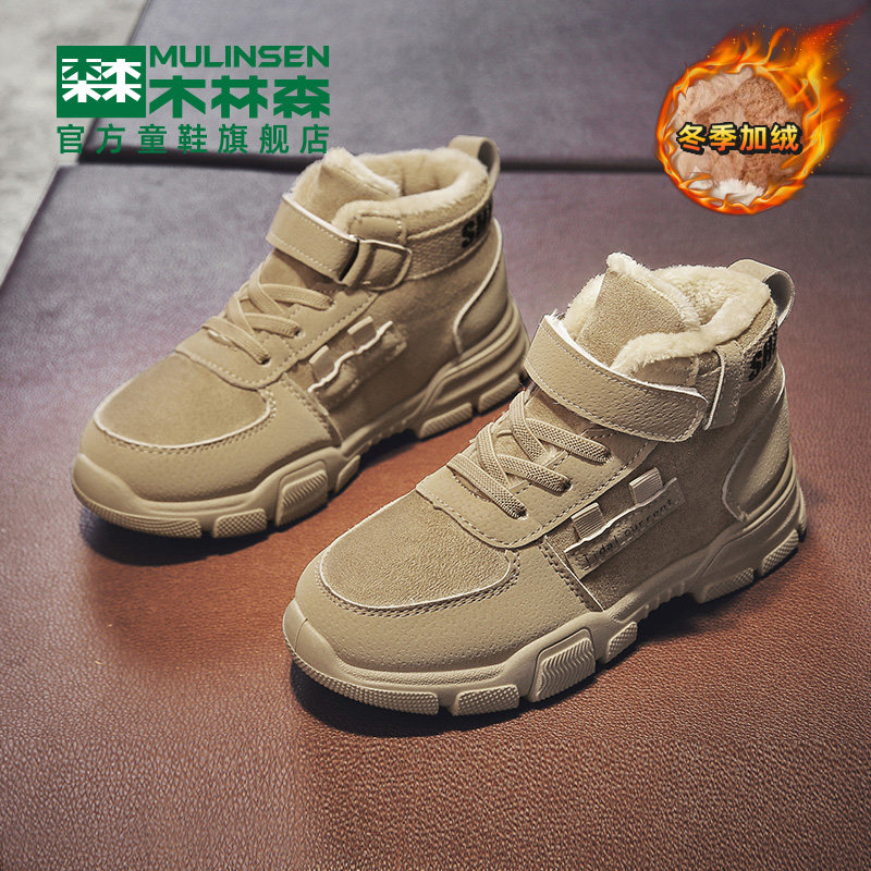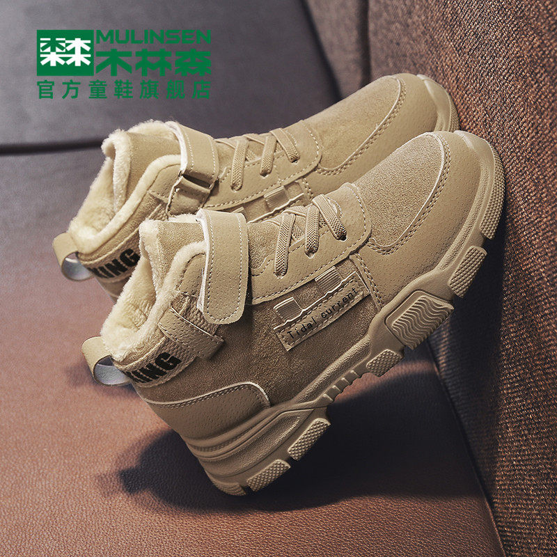 Mulinsen girls' cotton shoes thickened plus velvet children's high-top winter warm fur winter shoes boys Martin snow boots