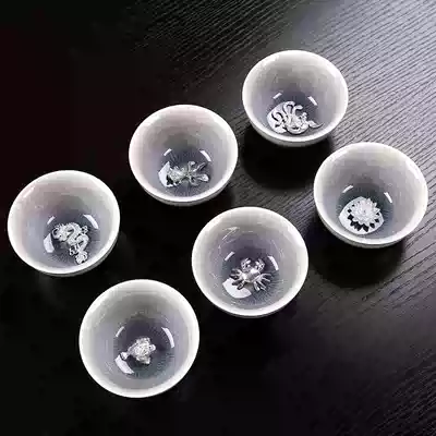 Jingdezhen kiln becomes Tianmu glaze Silver tea set Sterling silver Jun porcelain set Home office Kung Fu tea cup cover bowl gift