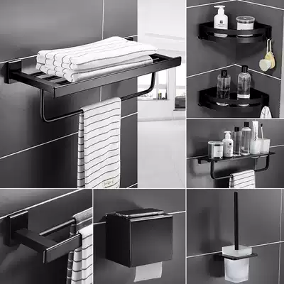 Nordic space aluminum simple modern padded black towel rack bathroom hardware pendant set rack