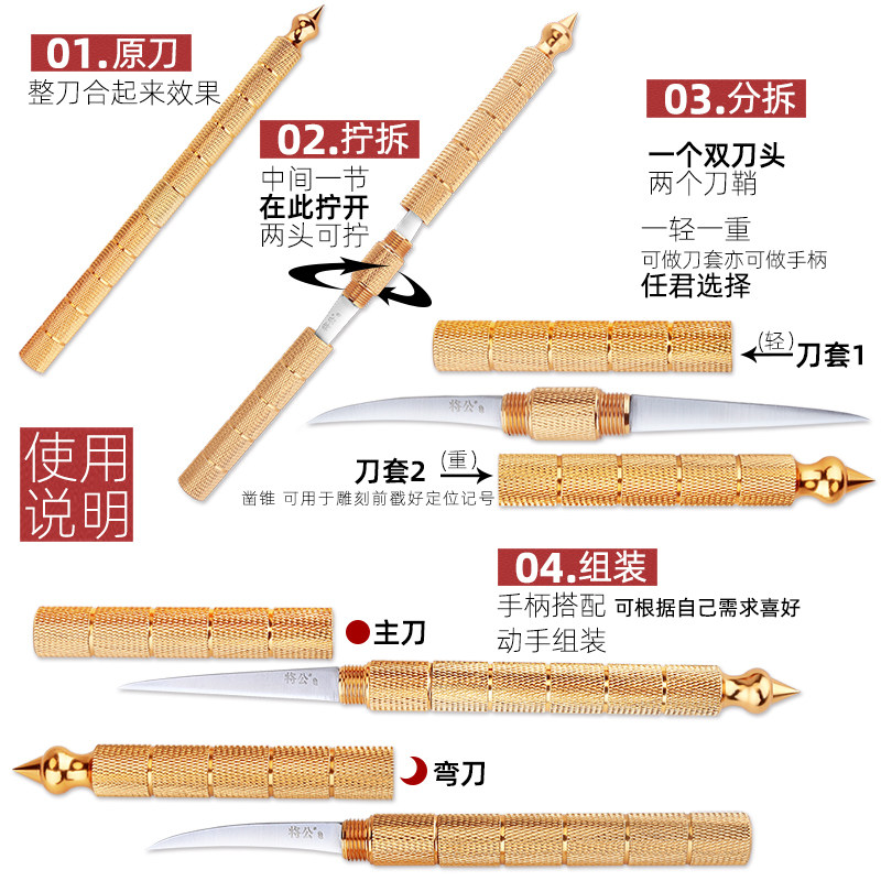 The male fruit portable Thai food carving knife Chef carving knife Main blade sharp free run-in gold handle