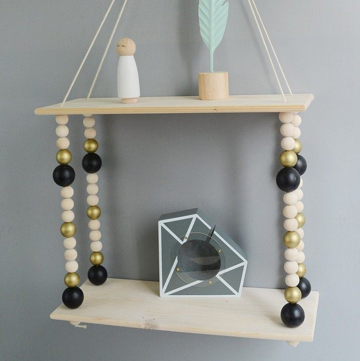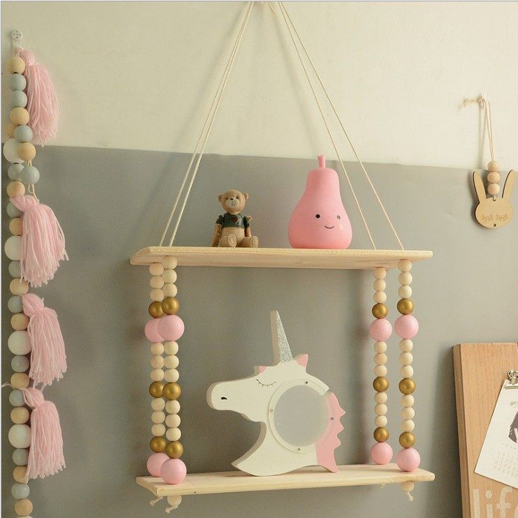 INS Nordic Wind Up Wall Shelf Wall Hanging Wood Decorated Solid Wood Natural Color Children Shelves Renovations