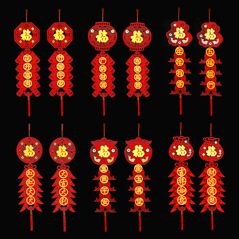 Chinese knot couplets fu character pendant New Year's Day New Year's Day decoration Festive Mall Company Living-room Arrangement Pendant Decoration