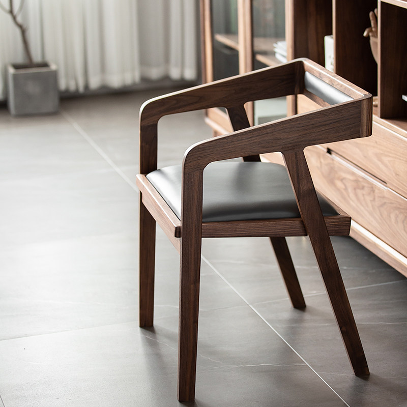 Black Walnut Solid Wood Leisure Chair Nordic Soft Backlog Backlog Book Chair Tenkun Modern Simple Japanese Computer Chair