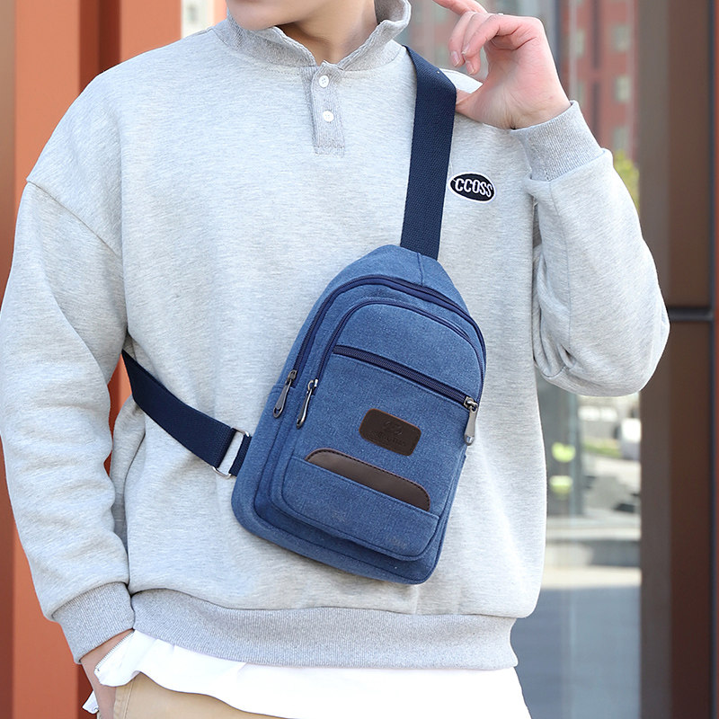 Canvas Chest Bag Men 2022 new men's single shoulder diagonal satchel large-capacity waterproof and abrasion-resistant casual chest front small bag