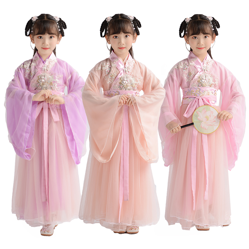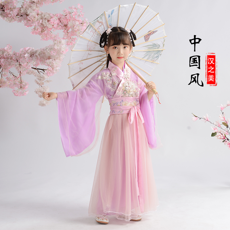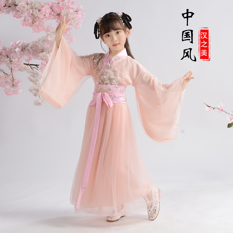Children's Hanfu women's spring and summer clothes Super fairy dress Chinese style elegant fairy Medium big virgin girl long sleeve suit