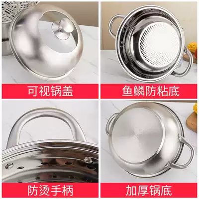 304 stainless steel steamer two-layer multi-layer steamed bread steamer steamer thickened 1-2-layer household induction cooker 30cm