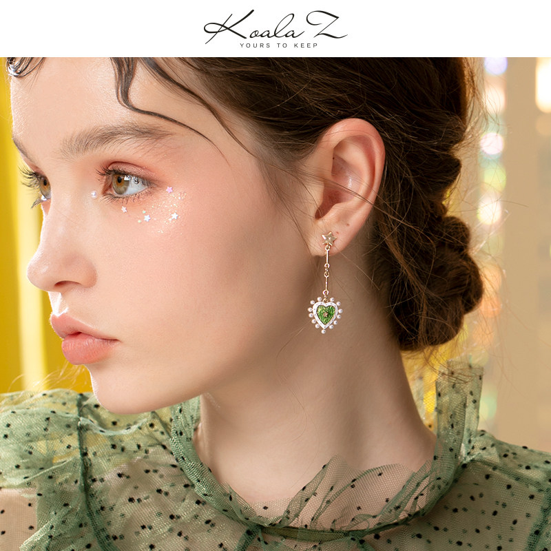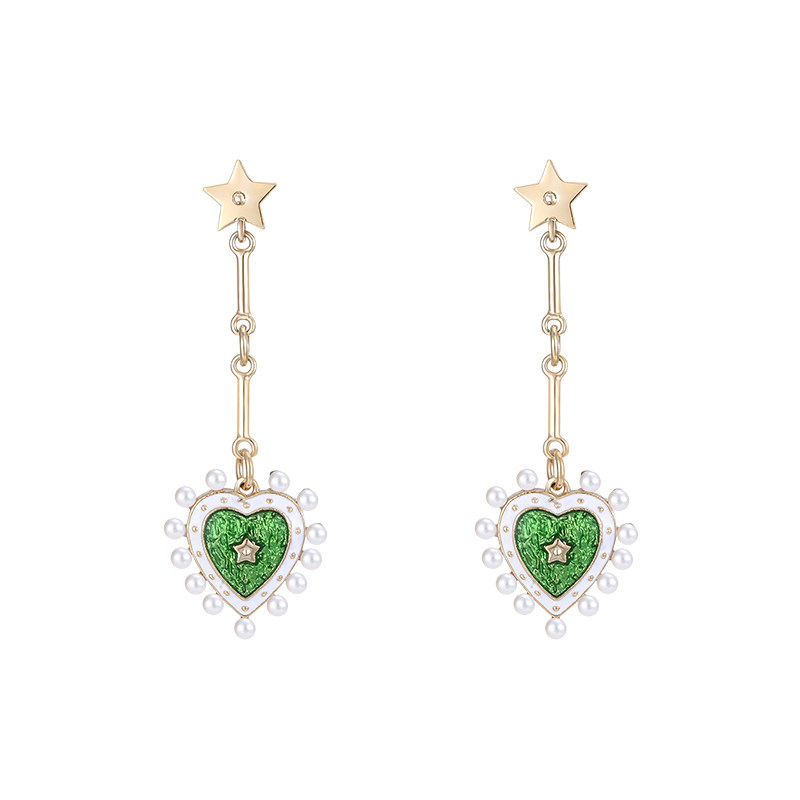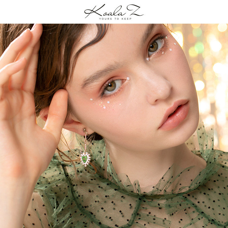 Retro Palace Tingale Great Design Green Drop Glaze Loving Pearl Ear Nail Without Pain Without Ear Clip Woman Roleta