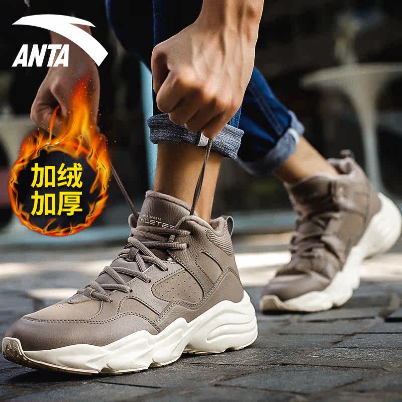 Anta men's shoes winter plus velvet warm shoes 2022 new men's waterproof leather high-top sports shoes cotton shoes men
