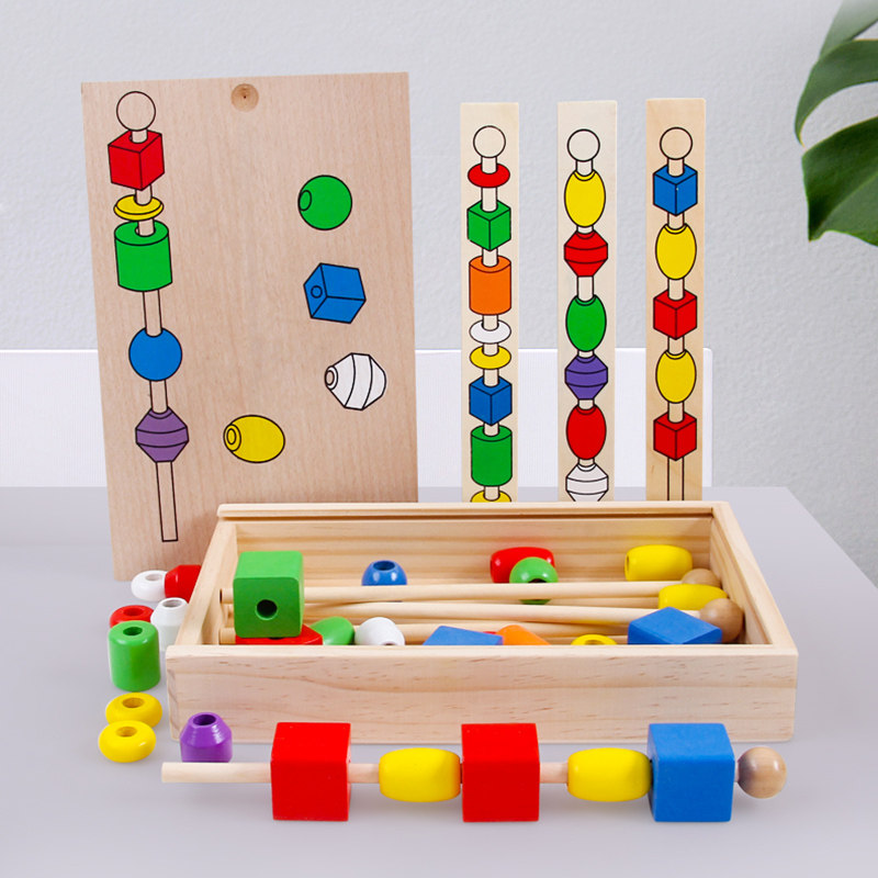 Early teaching children string of beads box baby puzzle wearing beads toy wooden male girl's fine action training