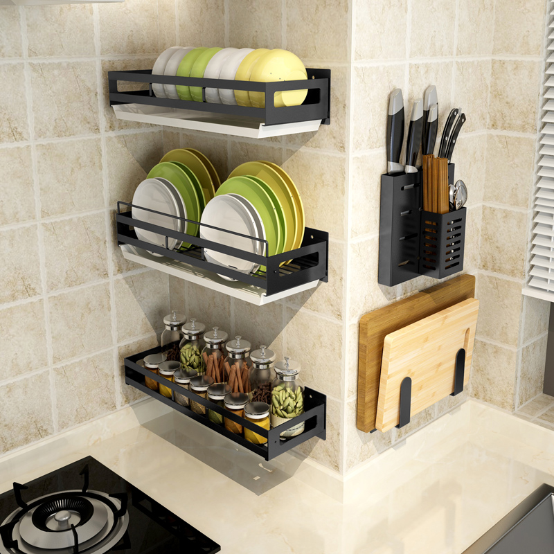 Free Punching Kitchen Shelve Wall-mounted Hook Bowl of Dish Chopping Frame Home Seasoned Seasoning Chopsticks Knife Holder