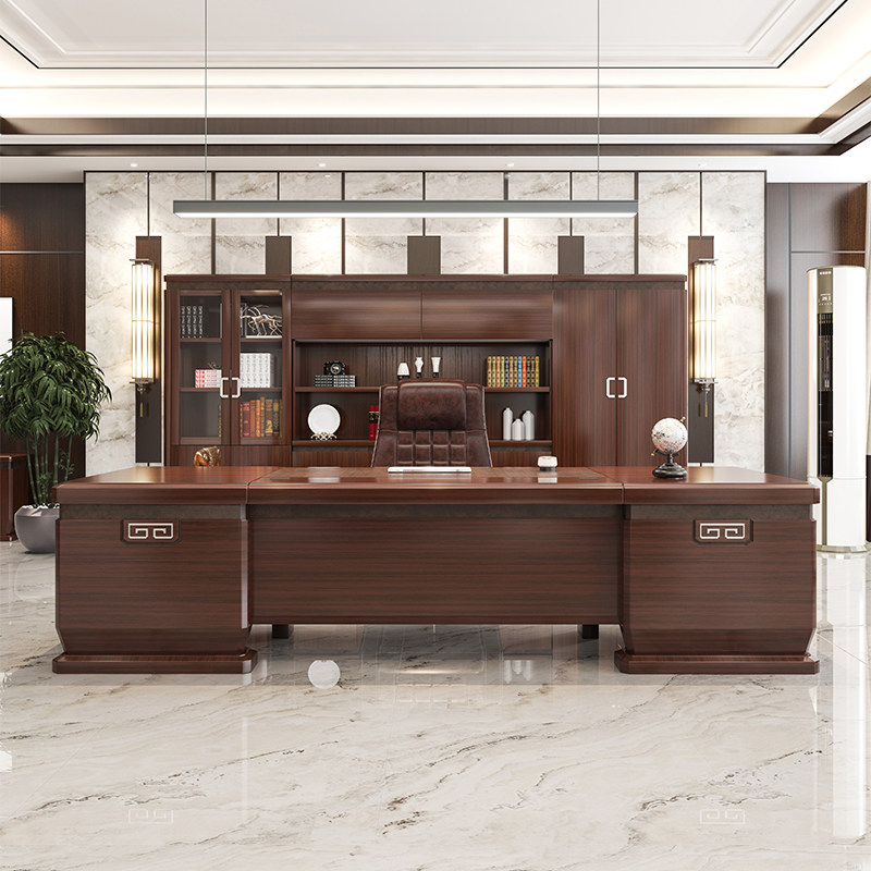 Boss table president desk new Chinese solid wood bark baking paint large class desk high-end fashion office desk and chair combination single