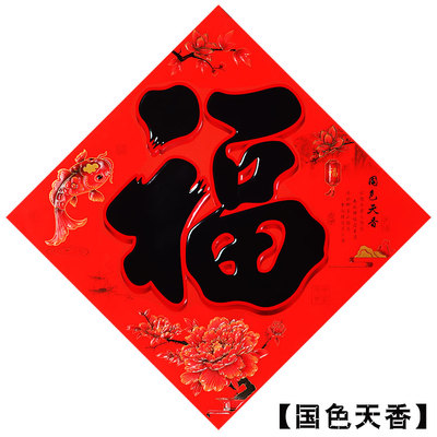 2021 Year of the Ox Spring Festival Blessing word door sticker Red bottom Black Calligraphy Flat Blessing New Year Creative Blessing Word Bucket Square Sticker