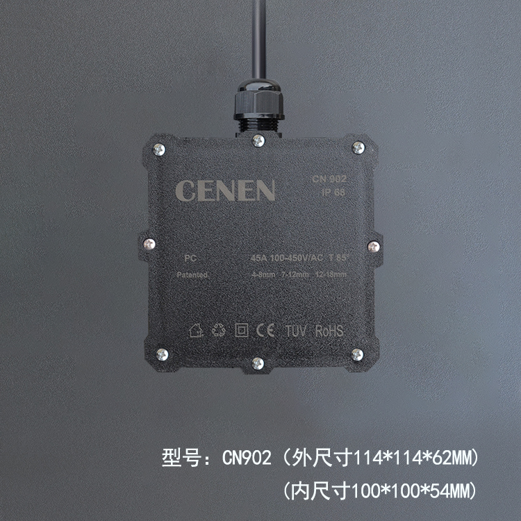 Single-hole outdoor waterproof junction box with joint terminal terminal box plastic shell CENEN black shell custom
