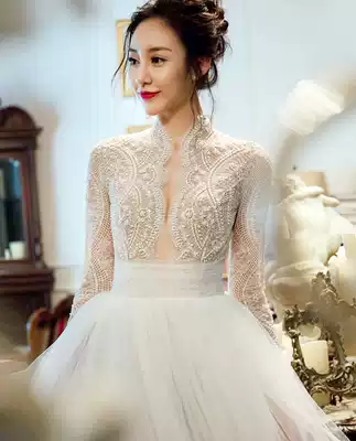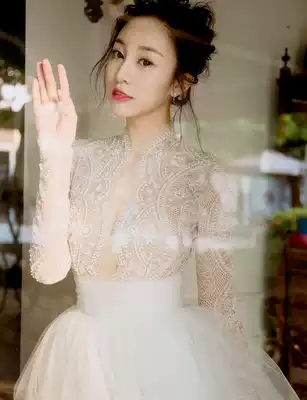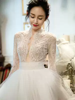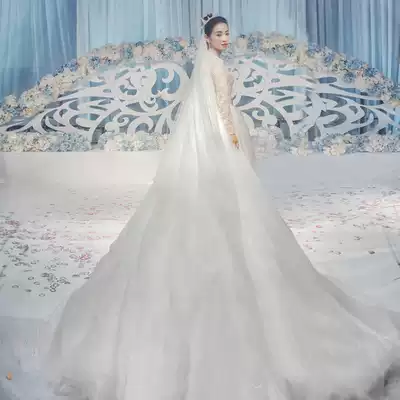 Light main wedding dress 2021 new bride tailing Super fairy summer French long sleeve small man retro court style