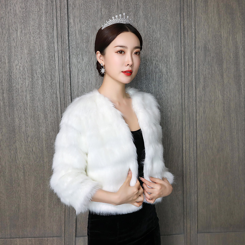 2020 new wedding fur shawl wedding dress warm jacket bride bridesmaid fur coat long sleeve boutique shawl