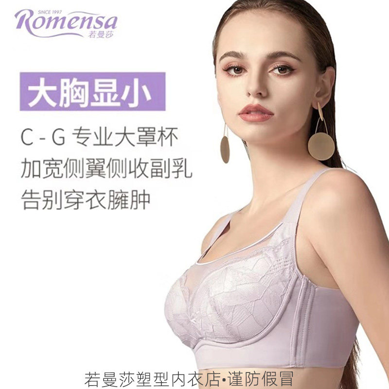 Ruomansha underwear official flagship big chest special thin full cup anti-sagging no steel ring shaping bra 8918