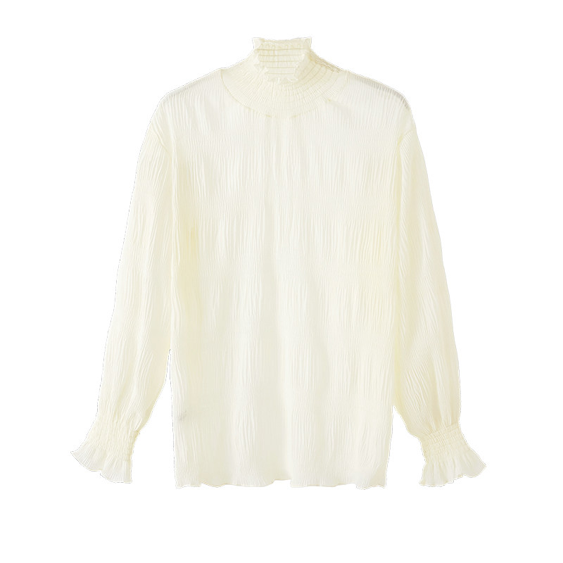 Very fairy Chiffon shirt top Sweater inside the female spring fungus edge half turtleneck long-sleeved mesh lace base shirt