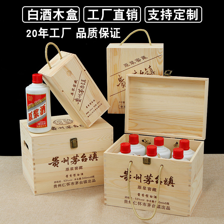 Liquor box hole Tibetan wine altar packing box wooden double 1 jin 6 bottles retro gift box Maotai town general wine box spot