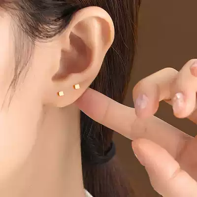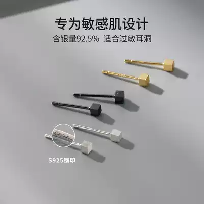 925 sterling silver ear needle female simple handmade drawing small ear bone nail cube men's tide earrings earrings