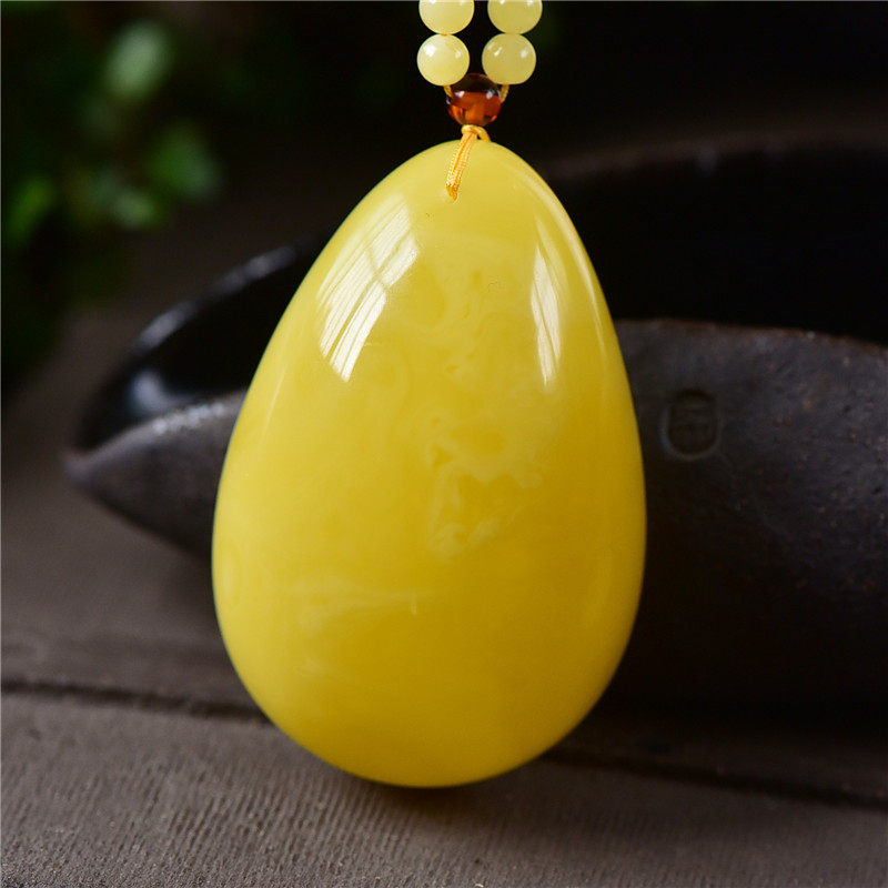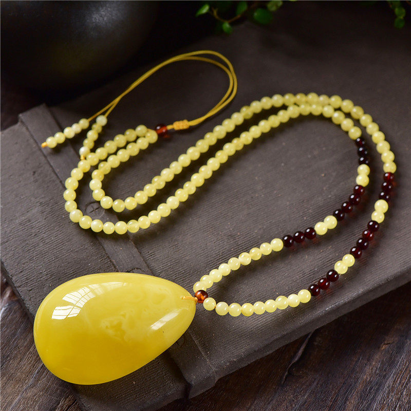 Natural non-optimized honey wax Russian chicken yellow water drop necklace necklace necklace sweater chain honey wax pendant large water droplets
