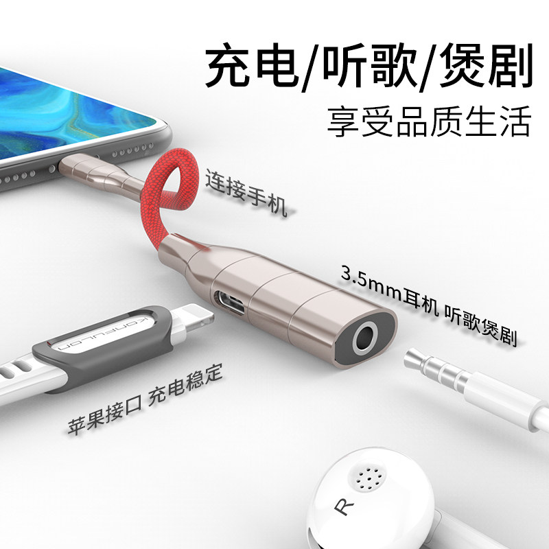 Work dragon apple 7 headphone adapter iPhone7plus mobile phone 11Pro switching line two-in-one 8 converter wire x charging data line p listen song